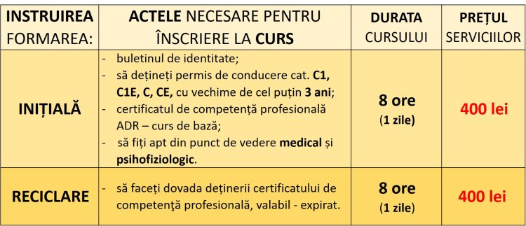 Notă: Pot fi înscriși la cursul specializat cisternă doar candidații care au urmat cursul de bază!