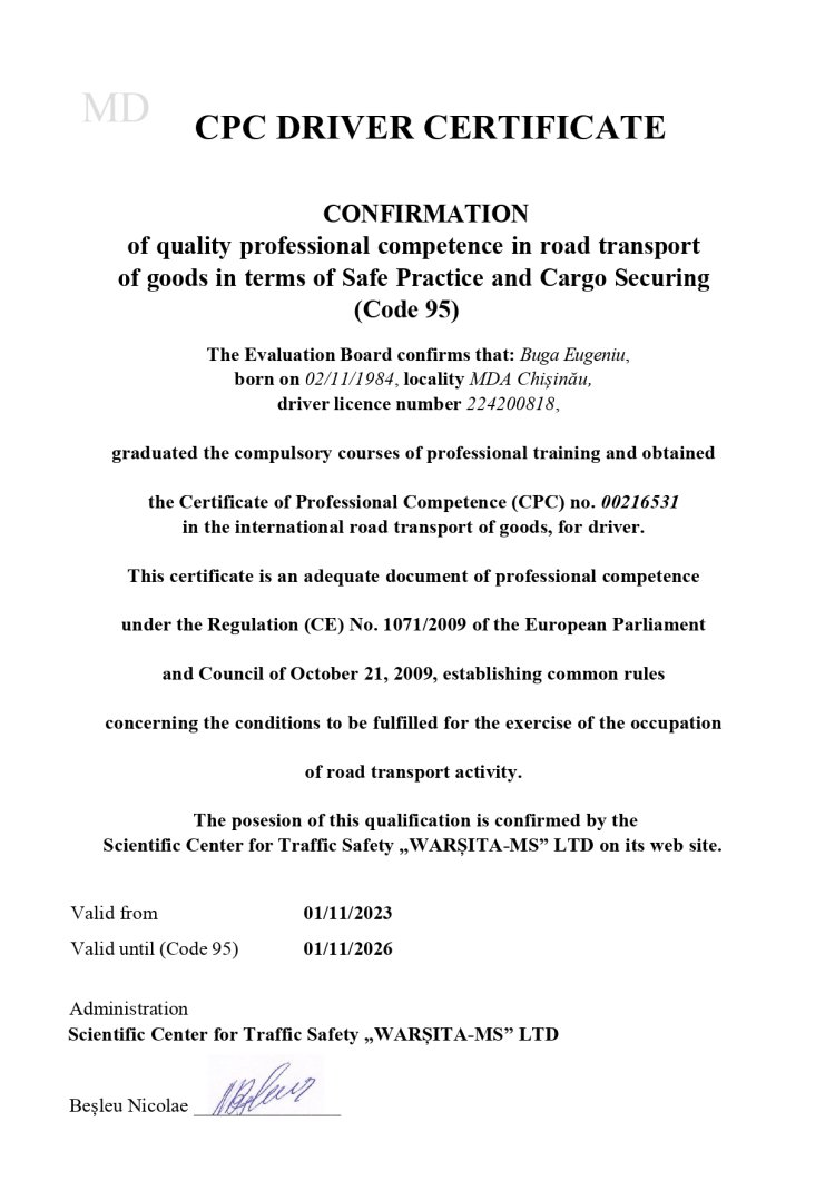 INSTRUIREA PERSONALULUI DIN DOMENIUL TRANSPORTULUI AUTO