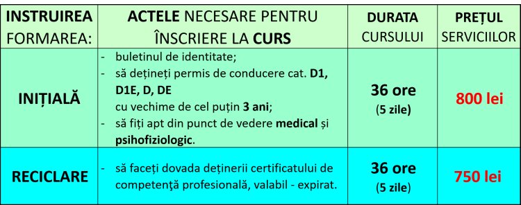 - reglementările profesionale AETR, CFP, Acordul INTERBUS, convenția CVR;