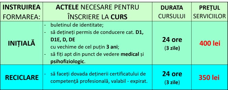 - să descrie şi să identifice mediul social al transportului rutier și reglementările din domeniu: perioadele maxime de lucru specifice industriei transporturilor;