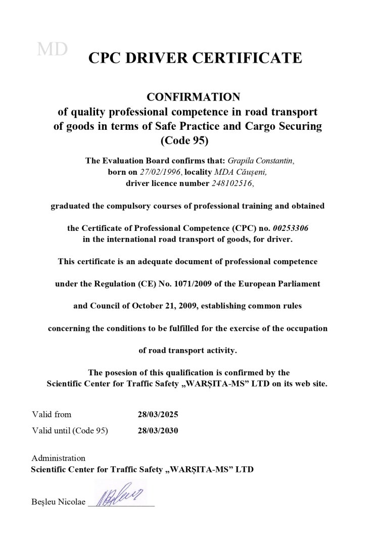 INSTRUIREA PERSONALULUI DIN DOMENIUL TRANSPORTULUI AUTO