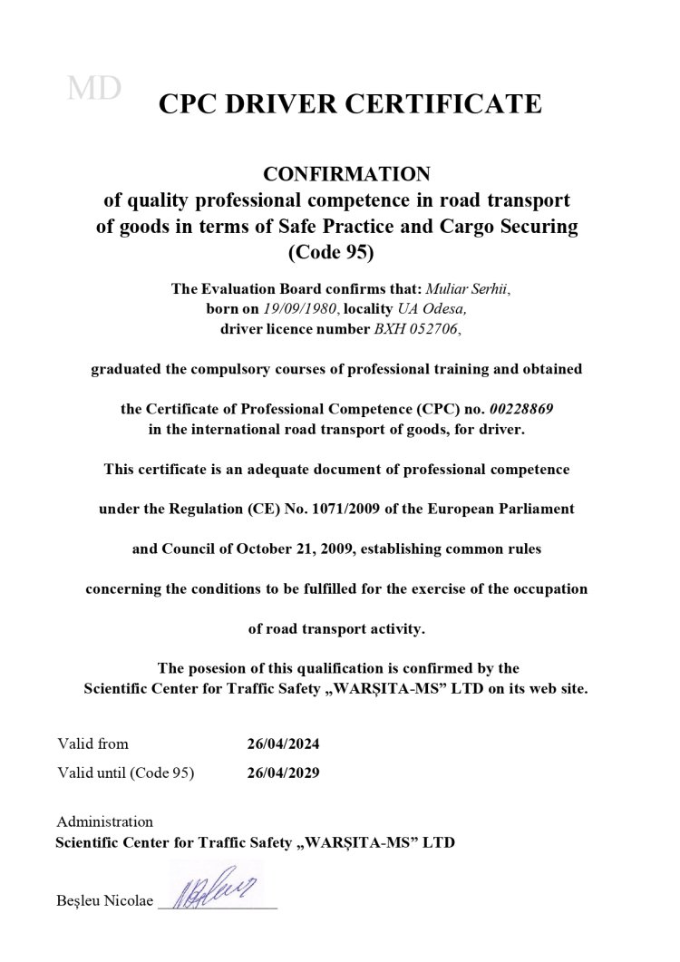 INSTRUIREA PERSONALULUI DIN DOMENIUL TRANSPORTULUI AUTO