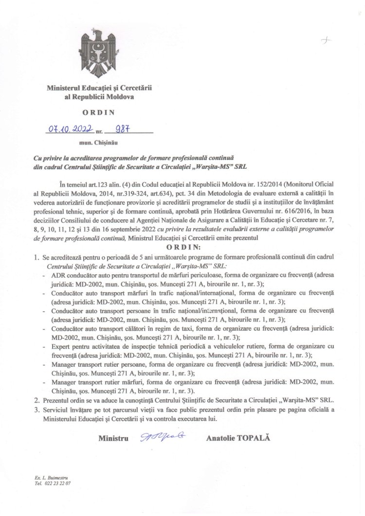 INSTRUIREA PERSONALULUI DIN DOMENIUL TRANSPORTULUI AUTO